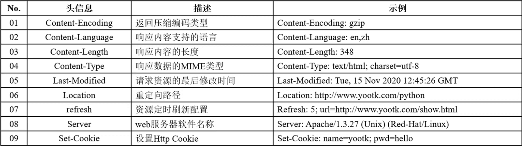 | No. | 头信息 | 描述 | 示例 |