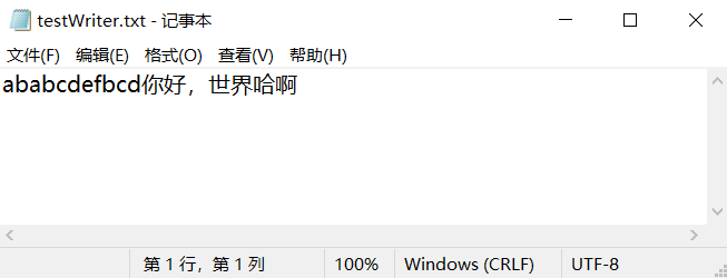 - abstract void write(char[] cbuf, int off, int len)写入字符数组的某一部分,off数组的开始索引,len写的字符个数。