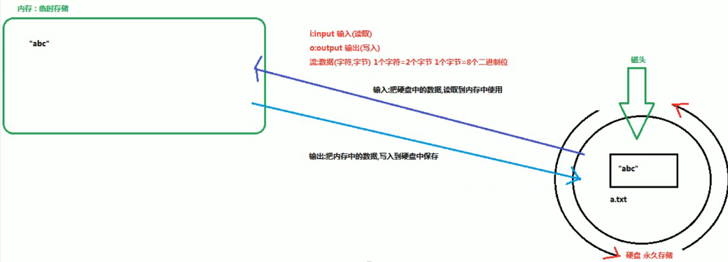 IO即是Input和Output,输入和输出,是内存和磁盘的交互,如图