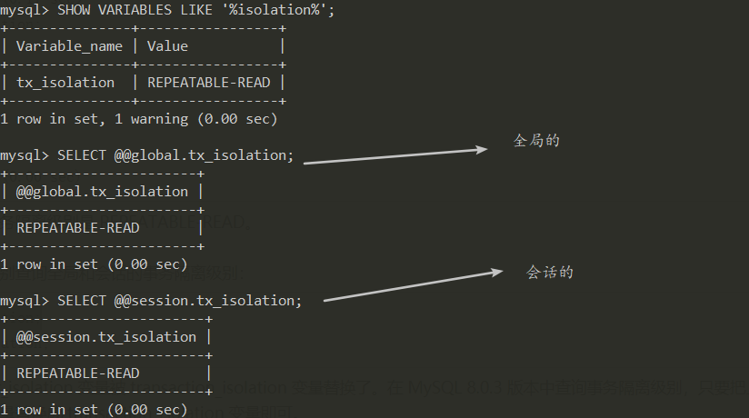 查看隔离级别