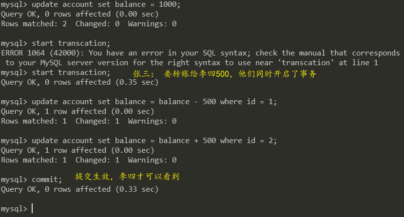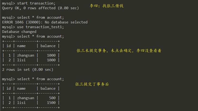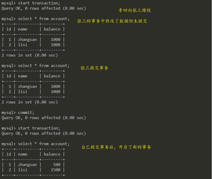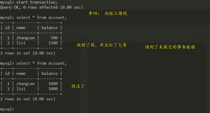 李四出现了脏读,不可重复读,凭空欠了张三500