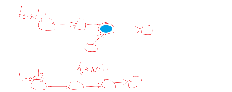 如图所示,找出两个单链表的相交点,若没有返回null